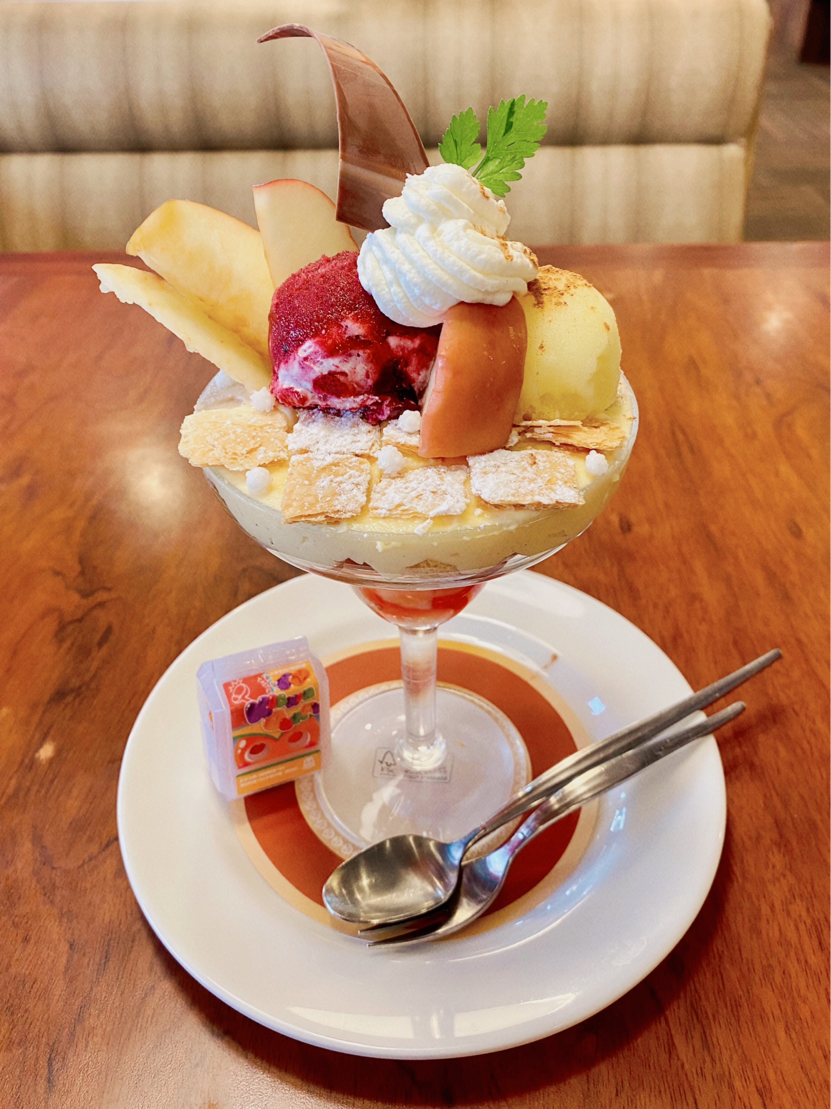 miya @miyalilac 日記、感想、萌え語り 🐣グラバザをプレイ中 2025年1月5日(日) 20:47 日常 #おやつ #ゴチゾウ ロイヤル… #おやつ #ゴチゾウ ロイヤルホストのりんごと紅茶のパフェをいただいてきた〜🍎 りんごたっぷりでおいしかった! メニューでおすすめの紅茶の組み合わせが紹介されてたので、イングリッシュブレックファーストという紅茶もいただいた。