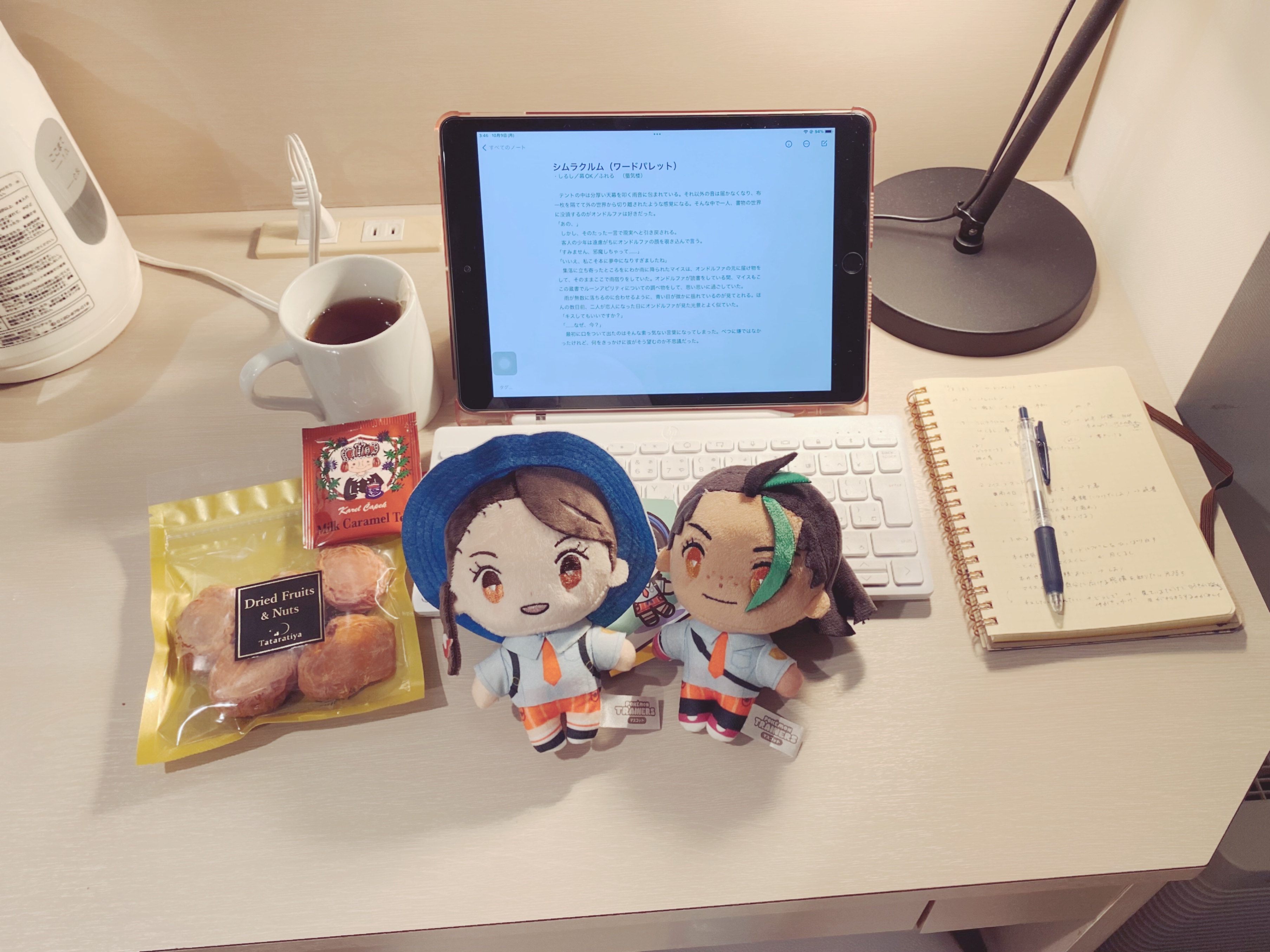 原稿中のおやつタイムの様子